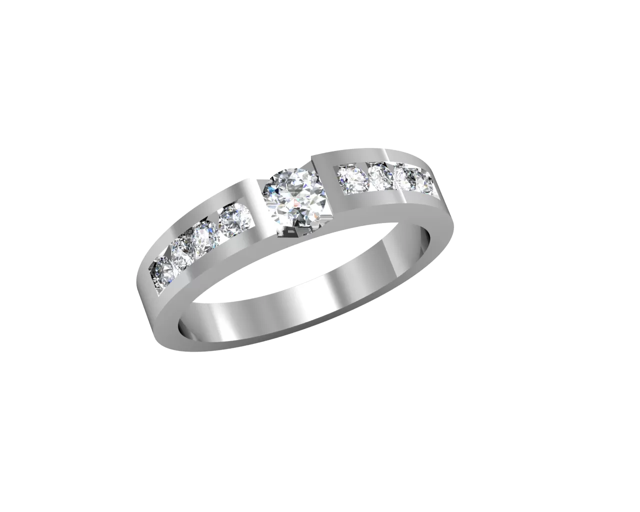 _ Nhẫn Nữ đính 1 viên Kim cương tự nhiên 4.1mm rời, đính 8 viên Kim cương tự nhiên 2mm