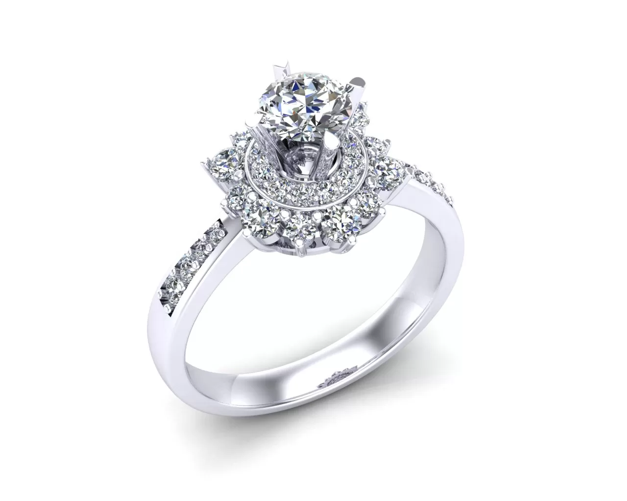 - Nhẫn Halo: Một viên kim cương lớn được bao quanh bởi những viên kim cương nhỏ tạo thành một vòng tròn, giúp làm tăng độ lấp lánh.