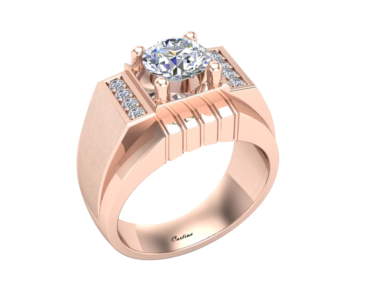 - Nhẫn nam vàng hồng phong cách cổ điển: Với thiết kế kiểu dáng mạnh mẽ, tinh tế, nhẫn vàng hồng này thường có các họa tiết chạm khắc tinh xảo, mang lại vẻ cổ điển nhưng vẫn rất thời trang.