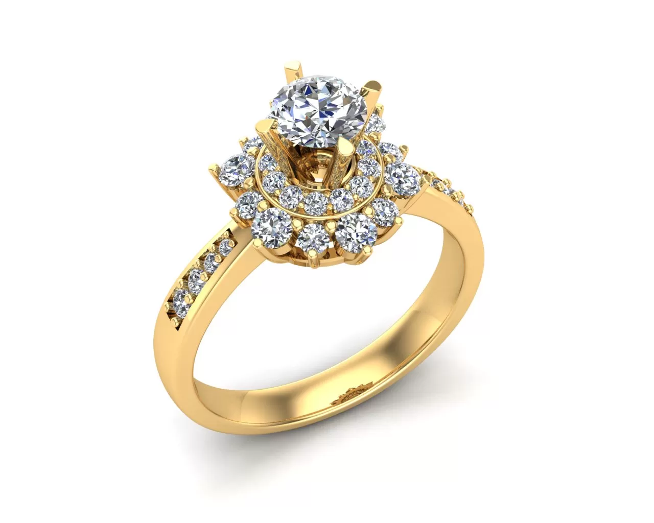- Nhẫn Halo: Một viên kim cương lớn được bao quanh bởi những viên kim cương nhỏ tạo thành một vòng tròn, giúp làm tăng độ lấp lánh.